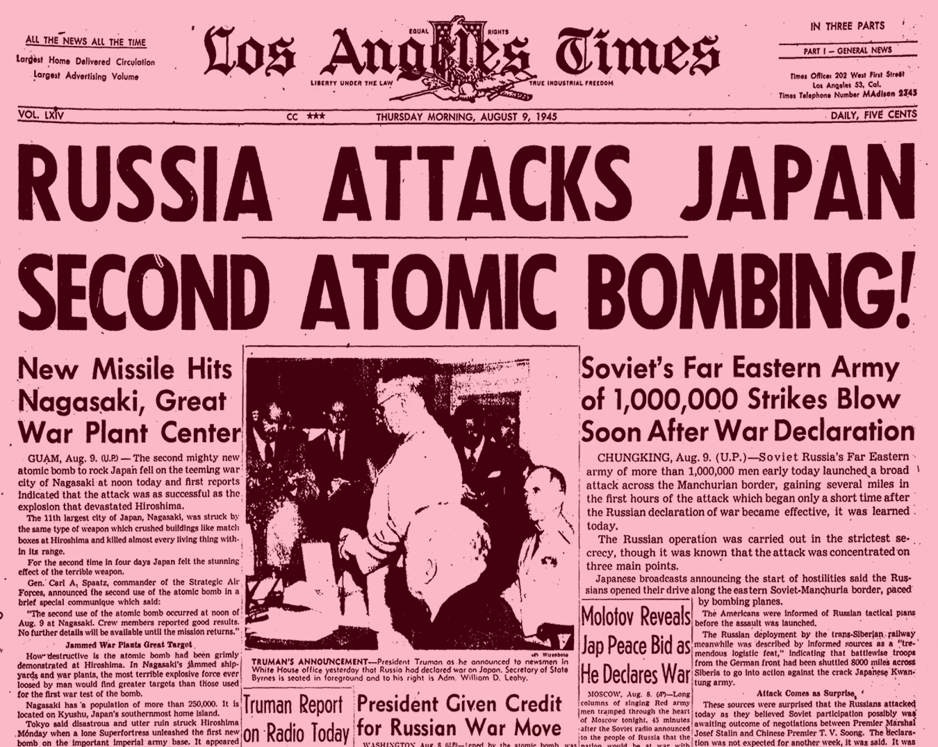 I never believed this because I knew that the nuclear masacres in Japan were really aimed as a threat to the Russians and