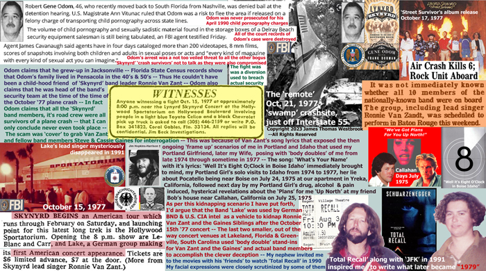 Odom was apparently taliking prior to 1990 -- The April 1990 kiddie porn 'bust' to intimidate Odom --- Also to let the other October 1977 'Skynyrd' plane crash survivors that they better stay in line of else ---