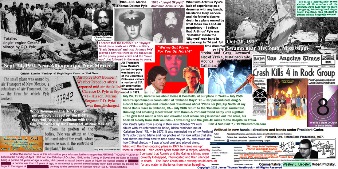 The author and artist James Thomas Westbrook --- also Reserves All Rights to these said same copyrighted photo art montages from "1979" which are posted at 1979westbrook.com and which now posted here at: 1970Posters.Com --- Any and all inquiries regarding the copyrighted materials displayed here at this website should be addressed to the copyright holder James Thomas Westbrook and sent by e-mail to: 79westbrook@protonmail.com'Artimis' Pyle's Promotion To Full Time Drummer After The Sudden Mental Breakdown Of Drummer Bob Burns -- His Role As A Purported Survivor Of The So Called Obtober '77 'Skynyrd' Plane Crash -- 'Artimus' / Thomas D. Pyle's April 1993 Arrest For The Months Long Acts Of Molestions Of Two Young Children 1992 -- His Remarkably Light Probation For The Crimes -- The Legal 'Cover-Ups' That Followed -- Unknown Fate Of The Kids -- Pyle's Intentional Probation Violation To Deflect Infamy & Conceal His Child Molestation Crimes -- Clever Social Media P.R. S